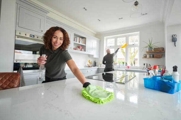 فريق نظافة احترافي مدرب على تنظيف الفلل والشقق دور كامل أو أدوار محددة. تنظيف الحمامات والمطابخ والغرف والمداخل بمواد فعّالة وآمنة.